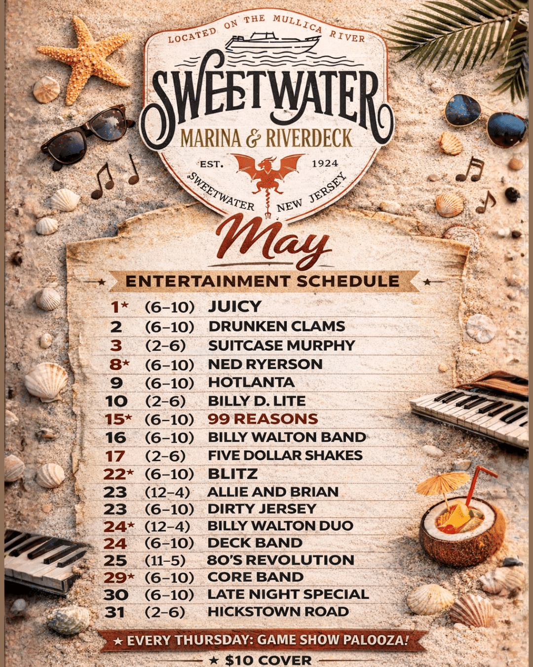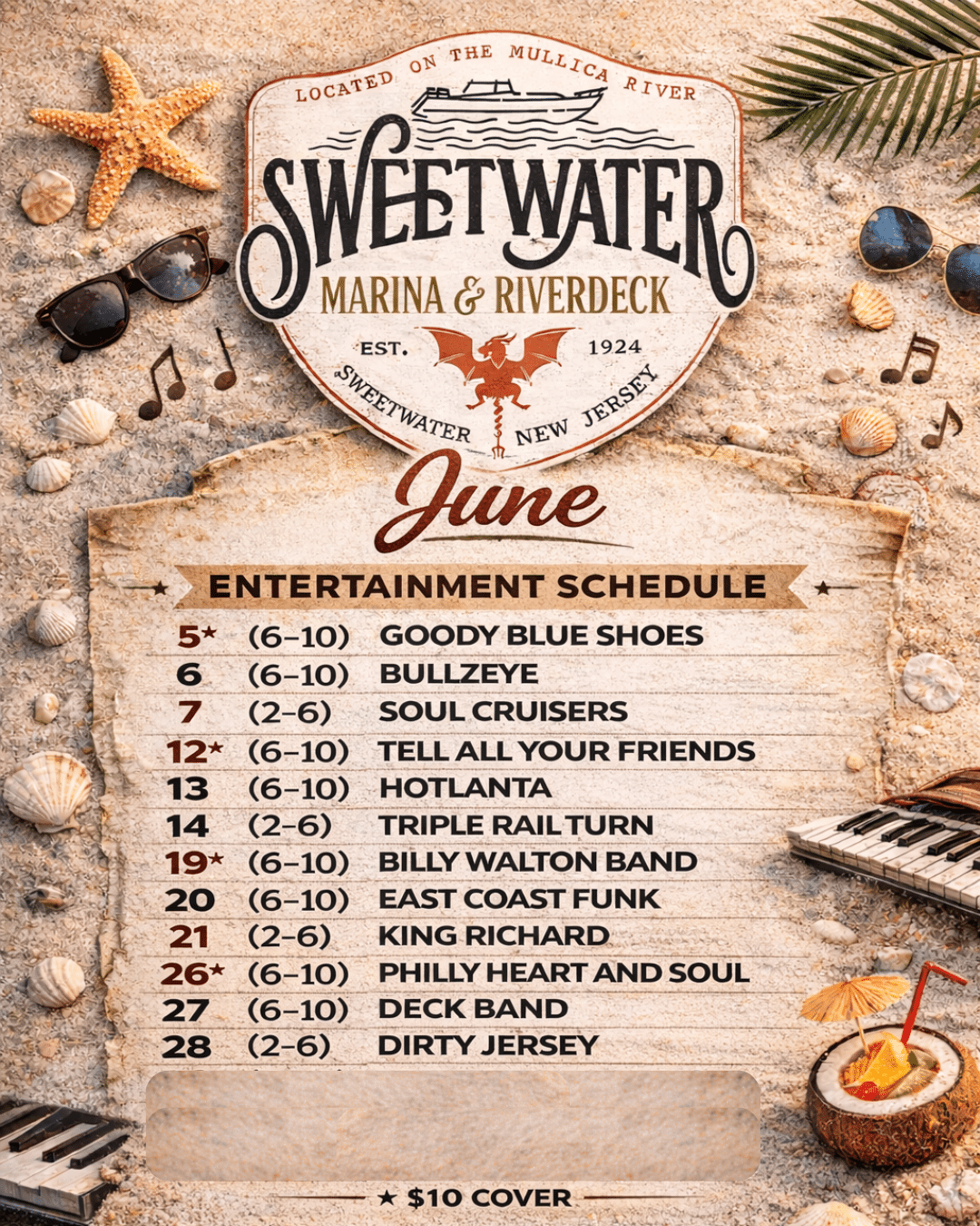 Spring is here, and so is live music at Sweetwater Marina & Riverdeck! Join us all season long for waterfront views, great food, and an exciting lineup of local bands and performers. Whether you’re planning a weekend outing or looking for the best live music in South Jersey, our spring schedule has something for everyone. Check out the full lineup and make your plans today!